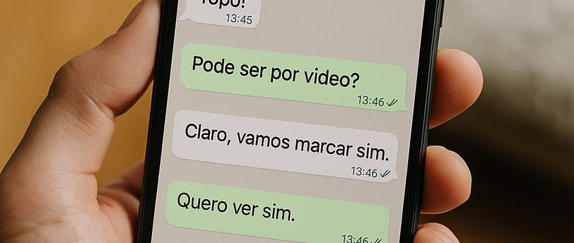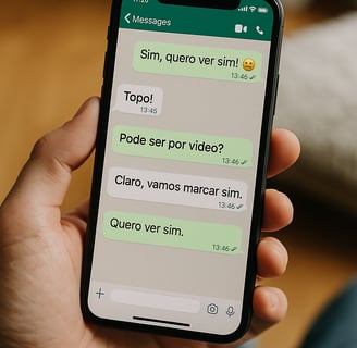 âQue Ăłtimo! Prefere que a gente se encontre pra um cafĂ© rapidinho ou quer que eu te mostre por vĂdeo? Tipo uma chamada de UNS 15 MINUTINHOS no WhatsApp?â